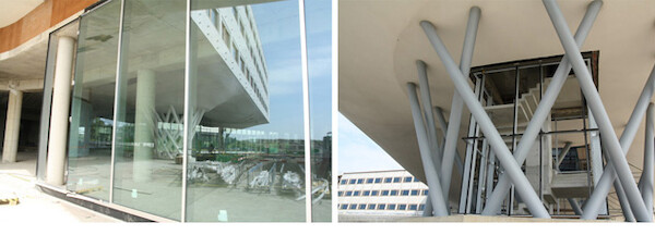 Het nieuwe ziekenhuis, geïnspireerd op het surrealistisch werk van René Magritte, zweeft als het ware boven het landschap en wordt tot in de ondergrondse ruimtes toe door licht en natuur gedomineerd. De link tussen binnen en buiten, tussen zorgfaciliteiten en publieke ruimtes is vrijwel naadloos met als gevolg een uitnodigende en inspirerende omgeving.