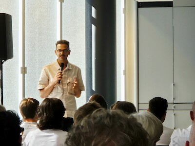 In aanloop naar de uiteenzetten over het Hi!Site zelf licht Ward in een korte introductie eerst toe hoe hij (vanuit PLUS en samen met zijn studenten architectuur van de KU Leuven) al verschillende jaren ontwerpend onderzoek doet rond ‘de productieve stad’. Daarna zet Maarten OPCO’s visie, strategie en aanpak voor deze site uiteen. Waarna Ward het weer overneemt om uit te leggen hoe PLUSOFFICE in 2018 door Ruimte Vlaanderen werden aangesteld als bemiddelaar om de visie van de gemeente, de nieuwe eigenaar van de site en de provincie op elkaar af te stemmen, hoe het project zich vanaf dan langzaam ontwikkelde, en hoe er doorheen de jaren nog een groot aantal bijkomende partners betrokken werden.