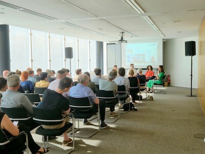 Vervolgens worden beide sprekers, samen met Philippe en Laura uitgenodigd om vooraan plaats te nemen voor de discussie met Lisa.
