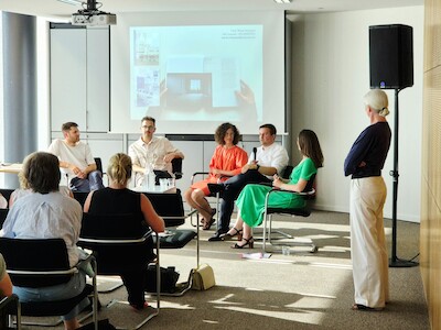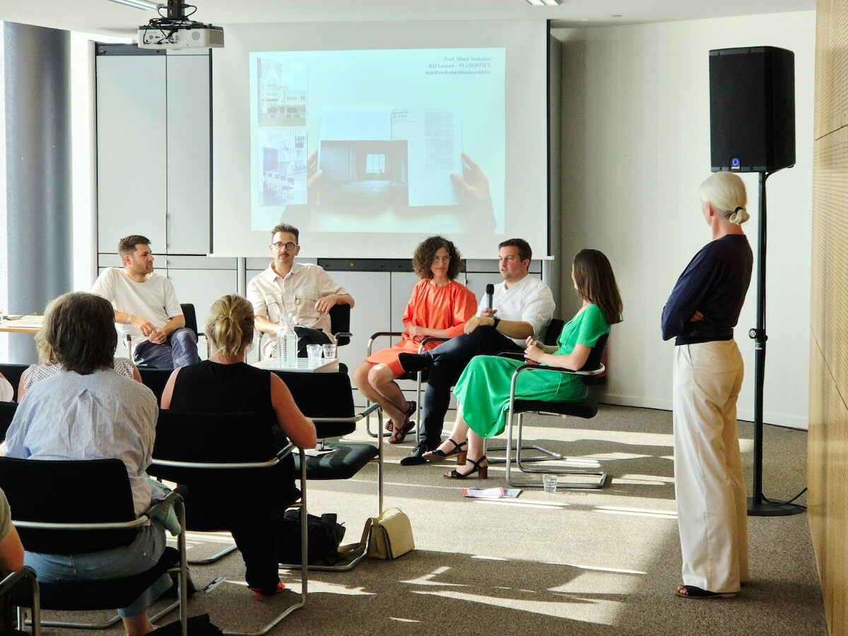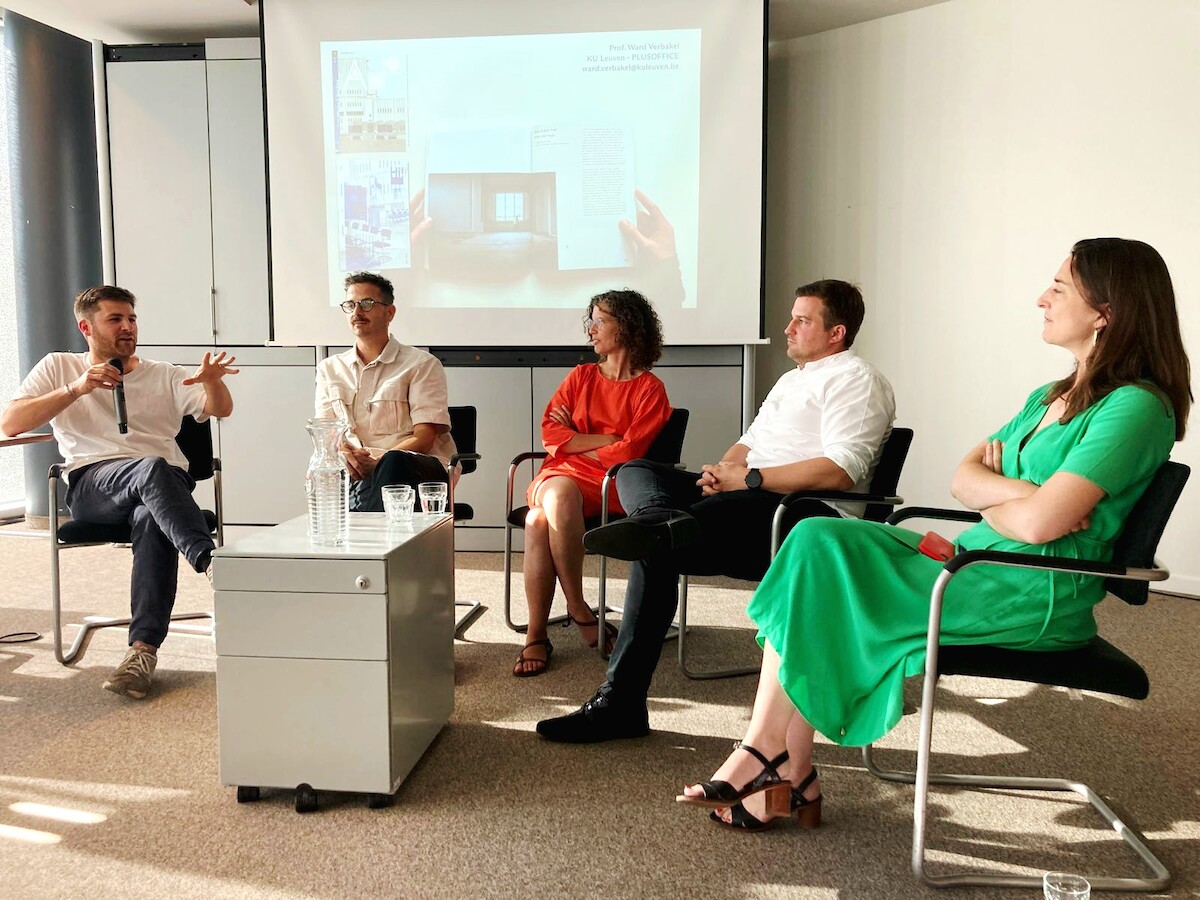De avond start met een aantal korte toelichtingen, alvorens over te gaan in een gesprek met Ward Verbakel van PLUSOFFICE, Maarten Van Gool van OPCO, Philippe Demeere van Global Estate Group, en Laura Muyldermans gemodereerd door Lisa De Visscher.