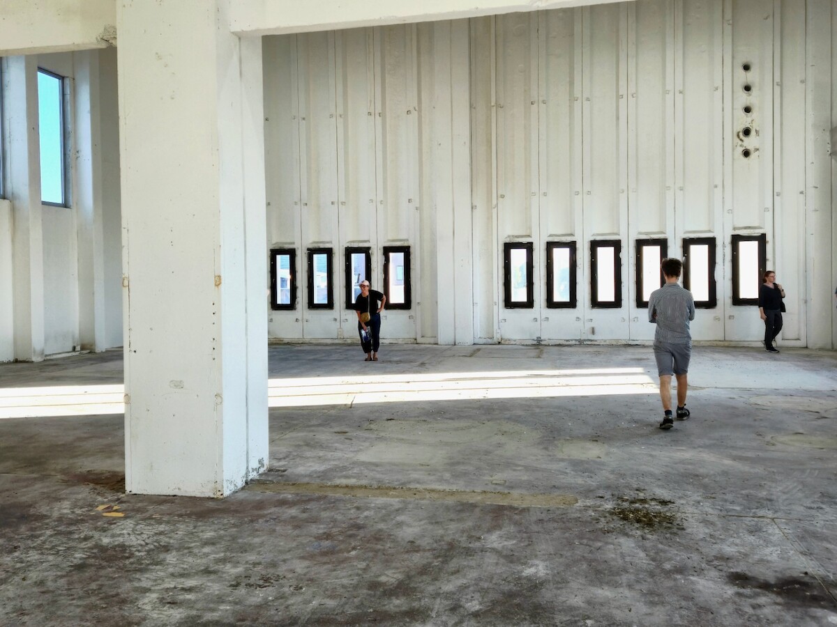 Wat bij aankomst meteen duidelijk wordt is dat dit inderdaad geen klassiek sloop-nieuwbouwverhaal is. De site oogt nog steeds heel industrieel, maar het vele groen zorgt voor een welkom gevoel en de toevoegingen in witte steigerbuizen leiden ons nieuwsgierig naar binnen.