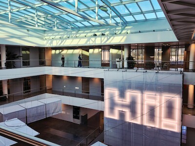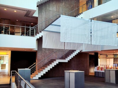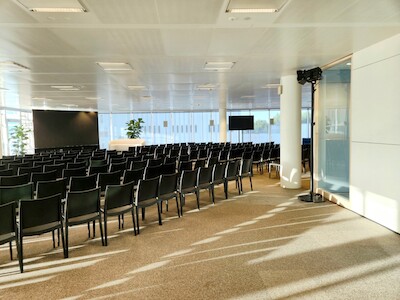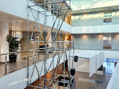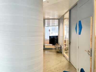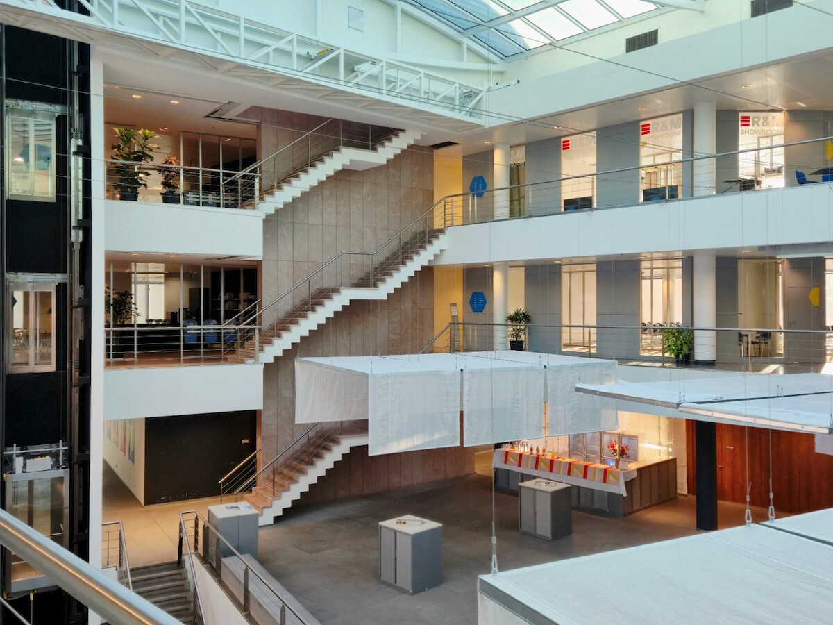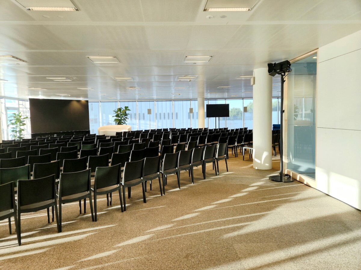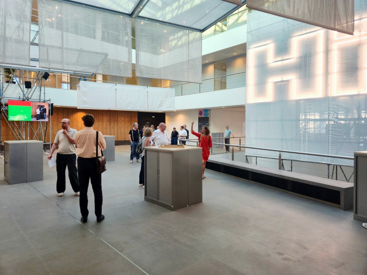 Hierop pikt Laura in met de bevestiging dat het bij dit project inderdaad kwestie was van zo’n groots mogelijk beweging te maken met zo weinig mogelijk elementen. Daarom werd hier ook goed nagedacht over een slimme ruimtelijke indeling. Want hoe maak je voldoende rustige kantoren rond een groot atrium, gezien de evenementiële functie op het gelijkvloers? Uiteindelijk werd er voor gekozen om de vergaderzalen als buffer in te zetten.