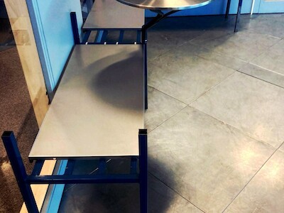 De duurzaamheidsgedachte werd in dit project bovendien ook doorgetrokken in de nieuwe elementen, die in houtskeletbouw zijn uitgevoerd en modulair zijn, waardoor ze na verloop van tijd prima te hergebruiken zullen zijn in een ander project. Een kanttekening die hij hier wel bij maakt is dat hergebruik niet altijd goedkoper is aangezien bestaande materialen soms gereinigd, hersteld, aangepast,… moeten worden, zoals bijvoorbeeld het geval was met de tafels in dit project. Waarop Lisa terecht opmerkt dat dit dan wel de lokale economie weer mee ondersteunt.